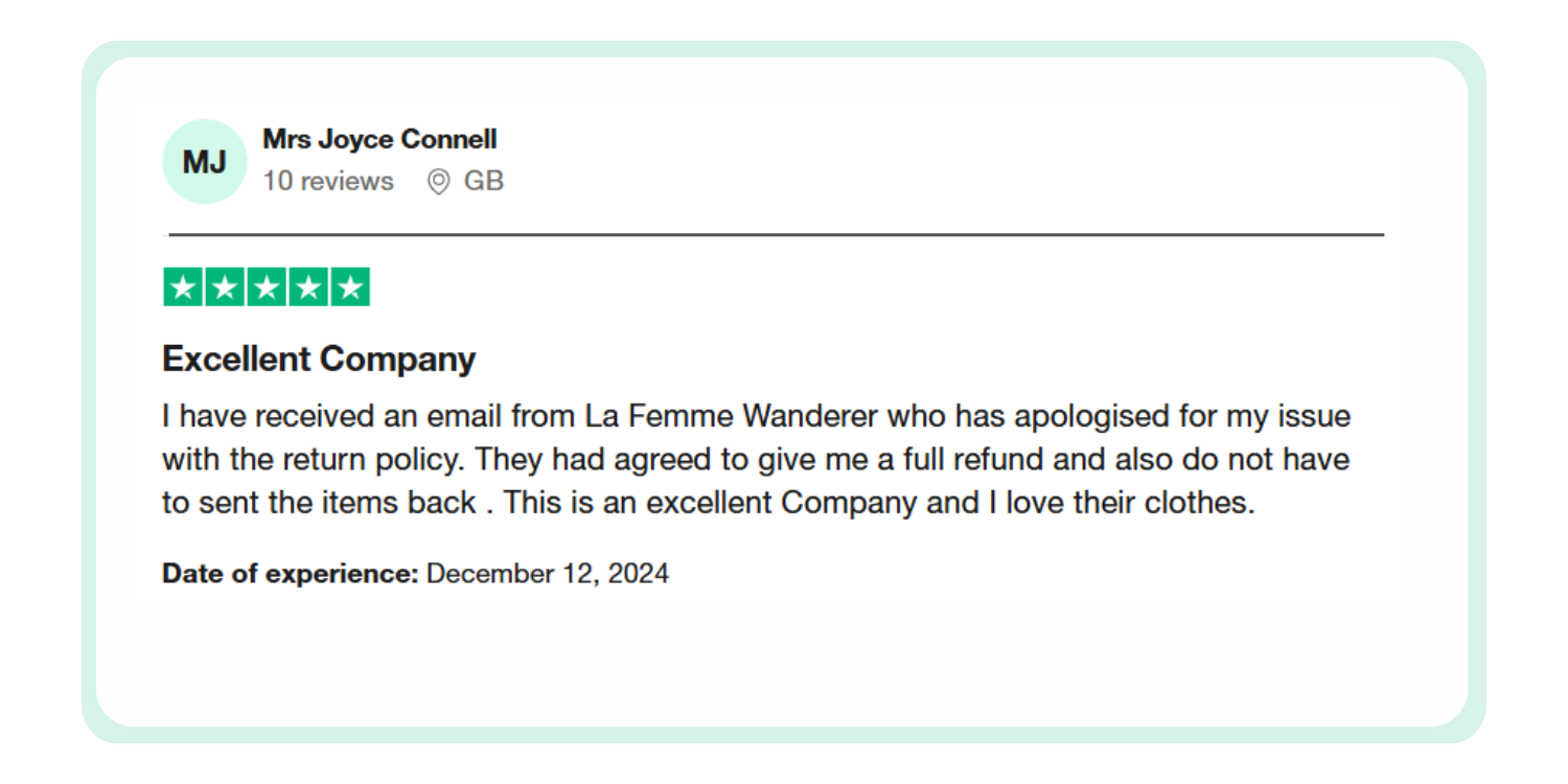 Full refund is available. Once you have received your items, get in touch with info@lafemmewanderer.com for Return/Refund purposes. Please refer to return policy.