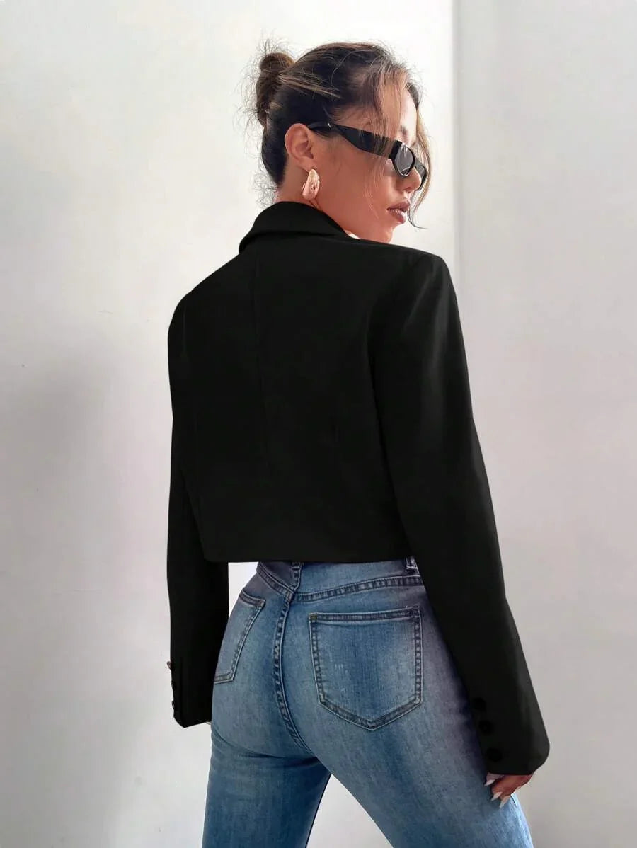 Lapel Neck Single Button Blazer Luxe Woven Crop Fit