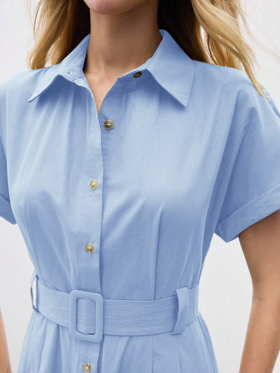 Ponadczasowa elegancja I cichy luksus Zdefiniuj tę swobodną sukienkę koszulową z kołnierzykiem i kieszeniami. Wyprofilowany kołnierzyk i proste linie tworzą szykowną, minimalistyczną sylwetkę, a praktyczne kieszenie dodają jej funkcjonalności na co dzień. Pasek podkreśla wysoką talię, podkreślając kobiecy kształt. Rękawy typu „batwing” swobodnie się układają, a rozkloszowany dół dopasowuje się do sylwetki, zapewniając uniwersalność i szykowność przez cały dzień. Ta sukienka jest oddychająca, miękka i przyjazna dla skóry, a jednocześnie delikatna dla skóry – idealna dla miłośniczek minimalistycznej mody, które szukają klasycznego stylu w codziennych stylizacjach.